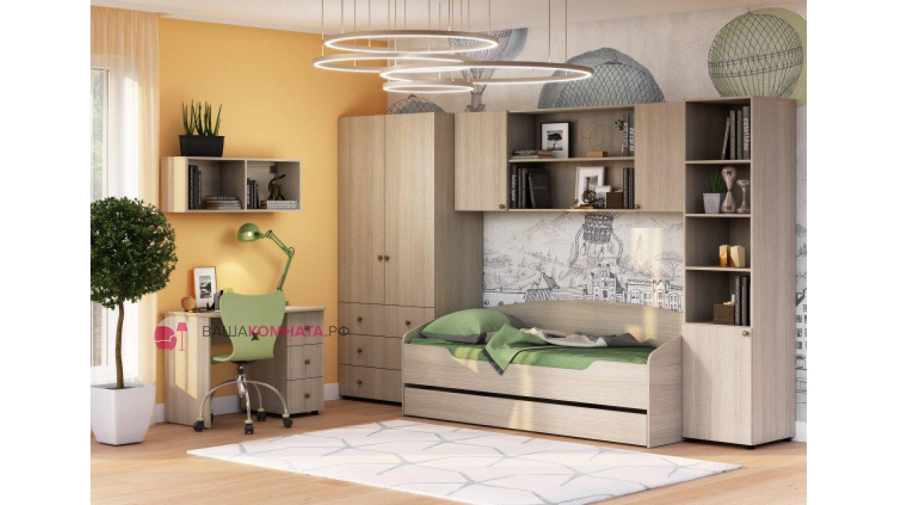 Модуль состоит из корпуса МИЙА-3 А_ Стол письменный_Корпус СТ-009 и фасада МИЙА-3 А Стол письменный_Фасад ЛДСП ФГ-009 для СТ-009.