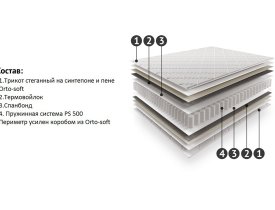 Состав: ППУ h 10 см (эрголатекс), бязь стеганная на 100 г. синтепона