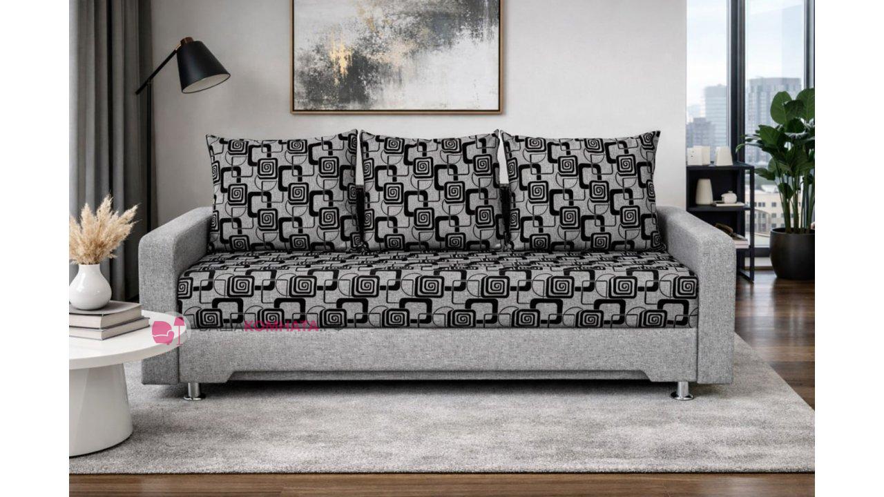 Диван-кровать "Алмаз-2" 1,4*1,86 м - Геометрия (флок на рогожке) / Серый (рогожка)
