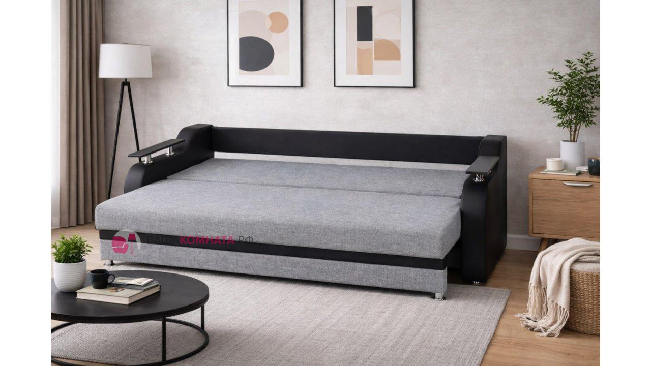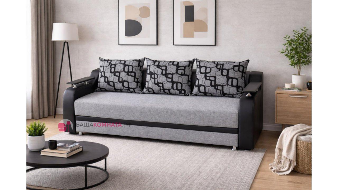 Диван "Рубин" - Серый (рогожка), Флок на рогожке (подушки) / Черный (кожзам)
