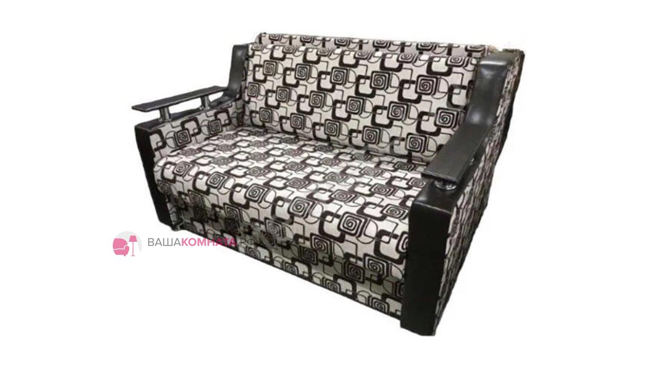 Диван выкатной "Гармония-2" 140 - Геометрия (флок на рогожке) / Черный (кожзам)
