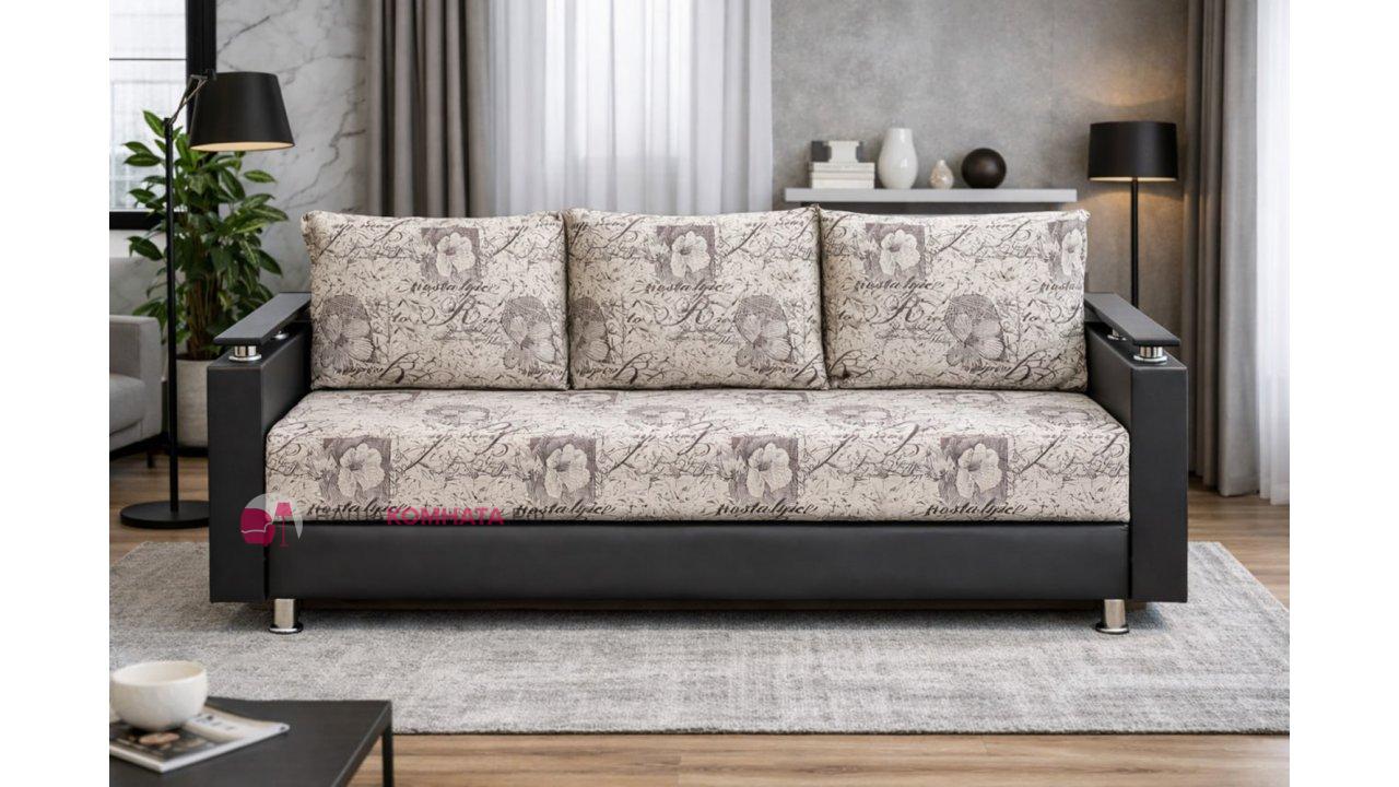 Евро-софа "Лилия" - Гарден (велюр) / Черный (экокожа)