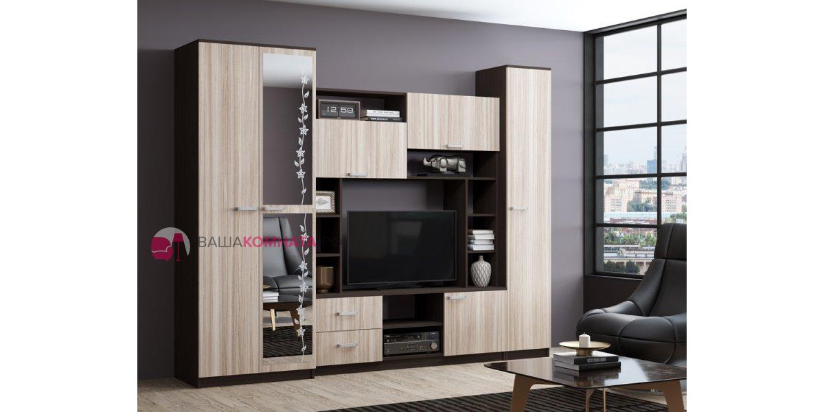 Гостиная "Флора-4" (Марта-11) (Улучшенная фурнитура) - Венге / Ясень шимо светлый