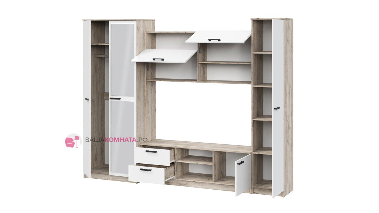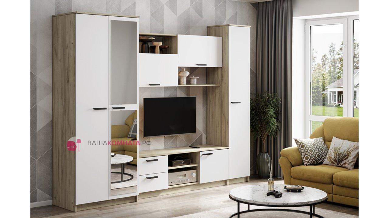Гостинная "Марта-12" SL - Дуб крафт серый / Белый