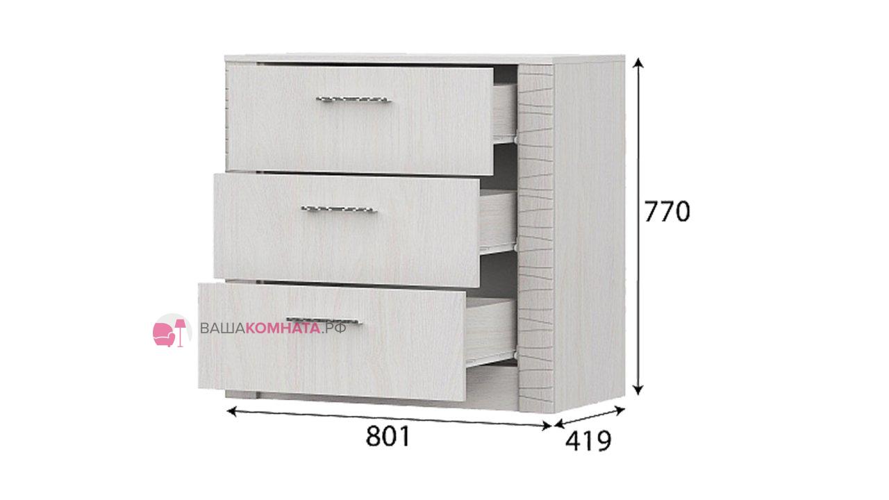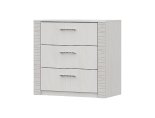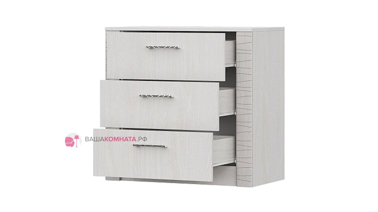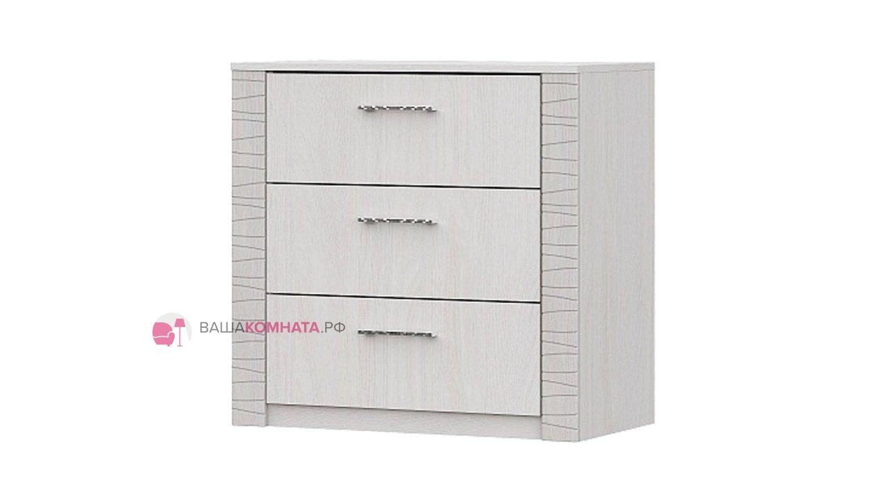 Комод 3 ящика Гамма 20 - современного дизайна высокий комод с выдвижными ящиками. Фасад комода украшают вертикальные накладки с волнистой фрезеровкой и оригинальные бликующие металлические ручки.