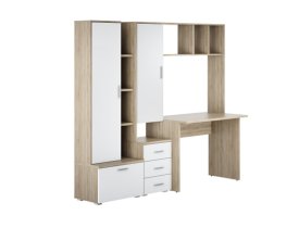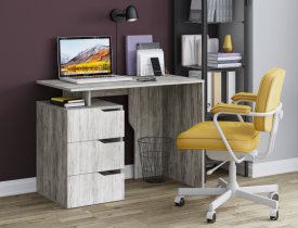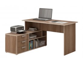 Помимо привычной столешницы здесь присутствует тумба с вместительным ящиком и полками.