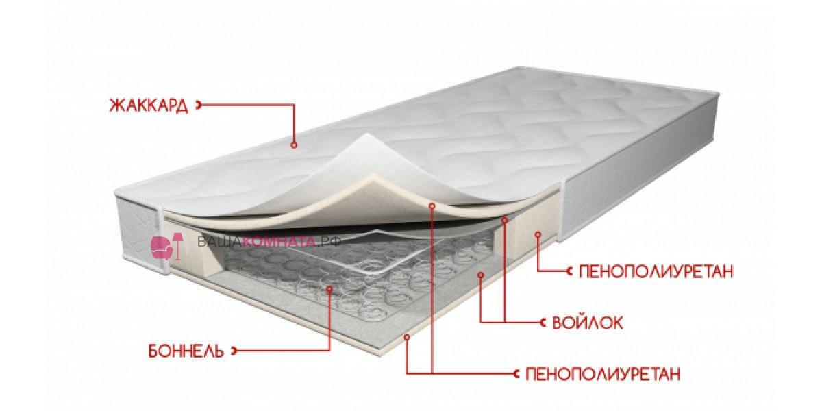 Состав: Ткань жаккард стег. на 100 г синтепона, ППУ 1 см, фетр, пруж. блок боннель, фетр, ППУ 1 см. без ппу отбортовки, усиление пружинного блока по углам.