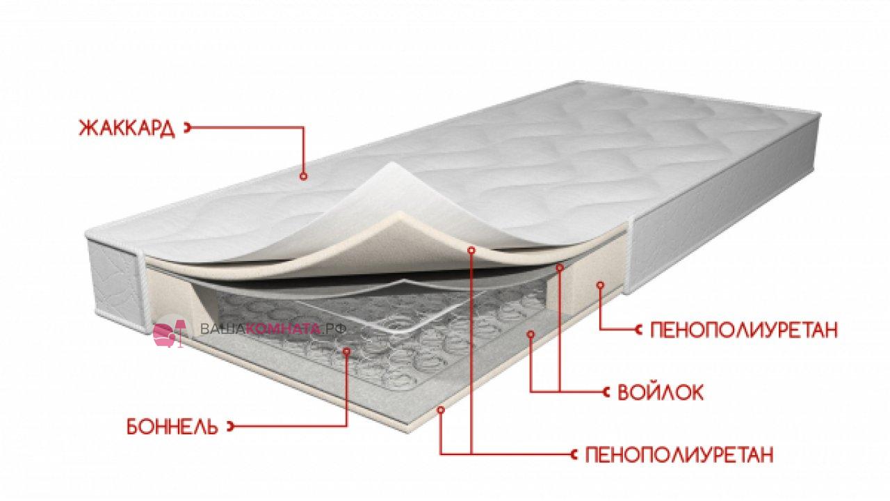 Состав: Ткань жаккард стег. на 100 г синтепона, ППУ 1 см, фетр, пруж. блок боннель, фетр, ППУ 1 см. без ппу отбортовки, усиление пружинного блока по углам.