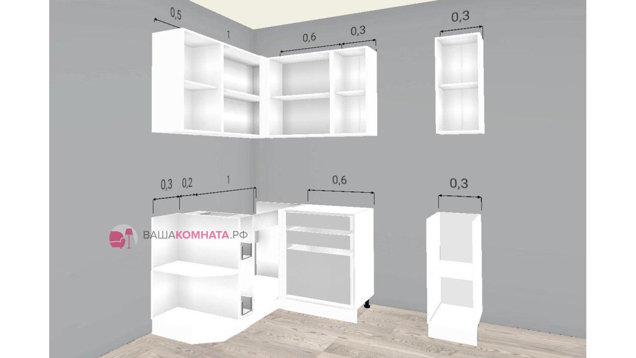 Внимание! Столешница, стеновая панель, смеситель, мойка, вытяжка, бытовая техника в комплект не входит, покупается отдельно! Рекомендованные размеры столешниц: 0,3м скос левый/правый + 1,2м + 0,6м + 0,3м (Угол может быть на правую и левую стороны, зависит от стороны скоса.)