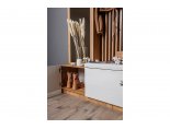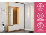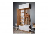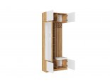 Прихожая состоит из навесной антресоли, напольной тумбы, пенала и МДФ-профилей 25х40мм. Внутри антресоли и тумбы есть перегородки, которые делят проем пополам и являются дополнительным ребром жёсткости. Полезная площадь проёмов 475х344х394 мм.