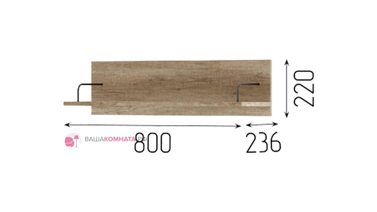 Полка Даллас представляет собой навесную конструкцию в лаконичном стиле, которая предназначена для размещения небольших предметов, таких как книги, рамки с фотографиями или декоративные предметы интерьера.