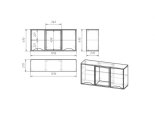 Полка навесная ПН-001 имеет две распашные створки из ЛДСП 16 мм. В створках произведена фрезеровка, заменяющая ручку. Длина фрезеровки 256 мм. Фасад внутренний.