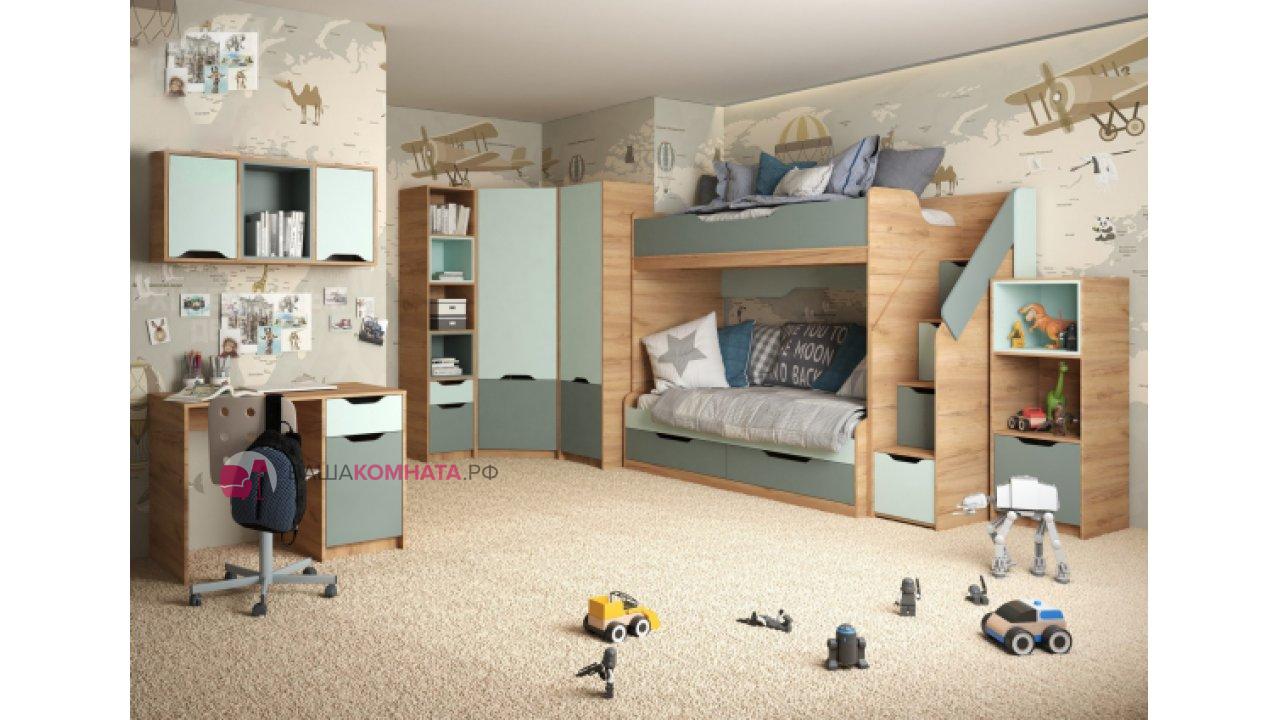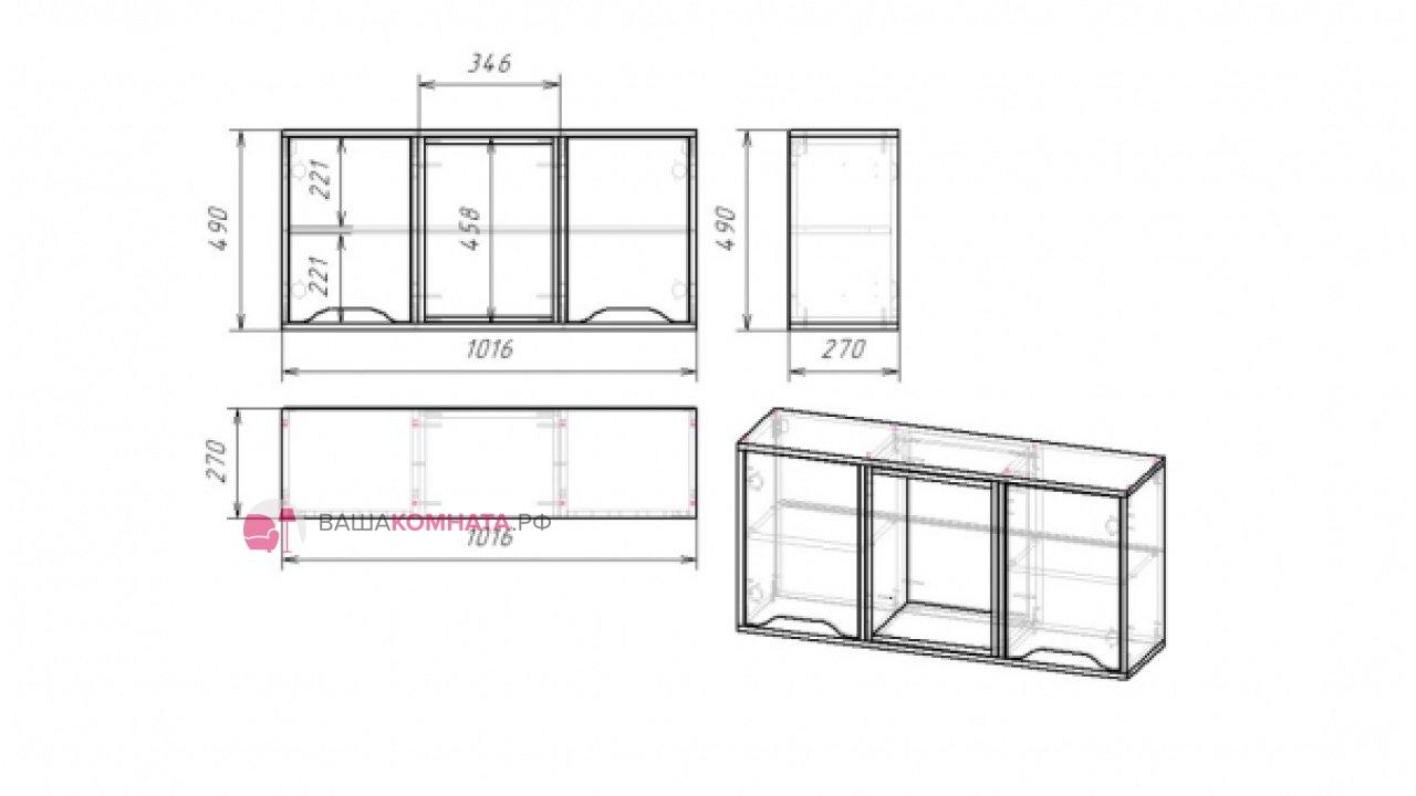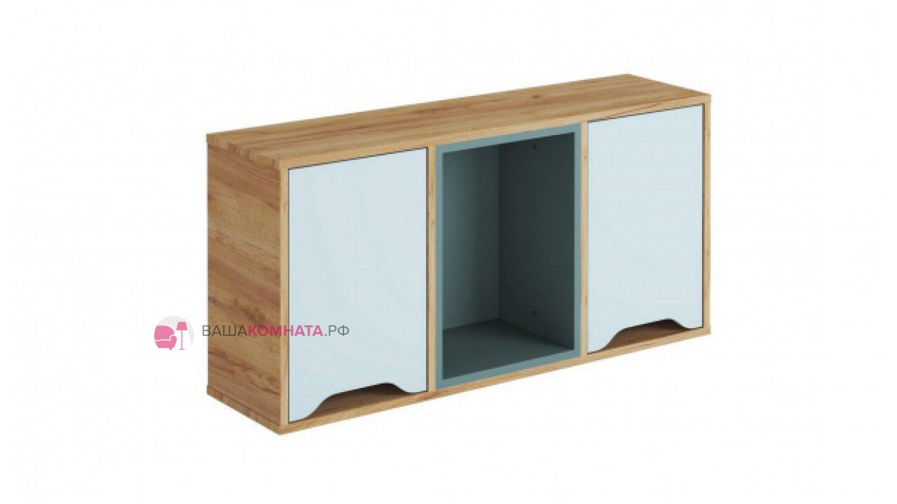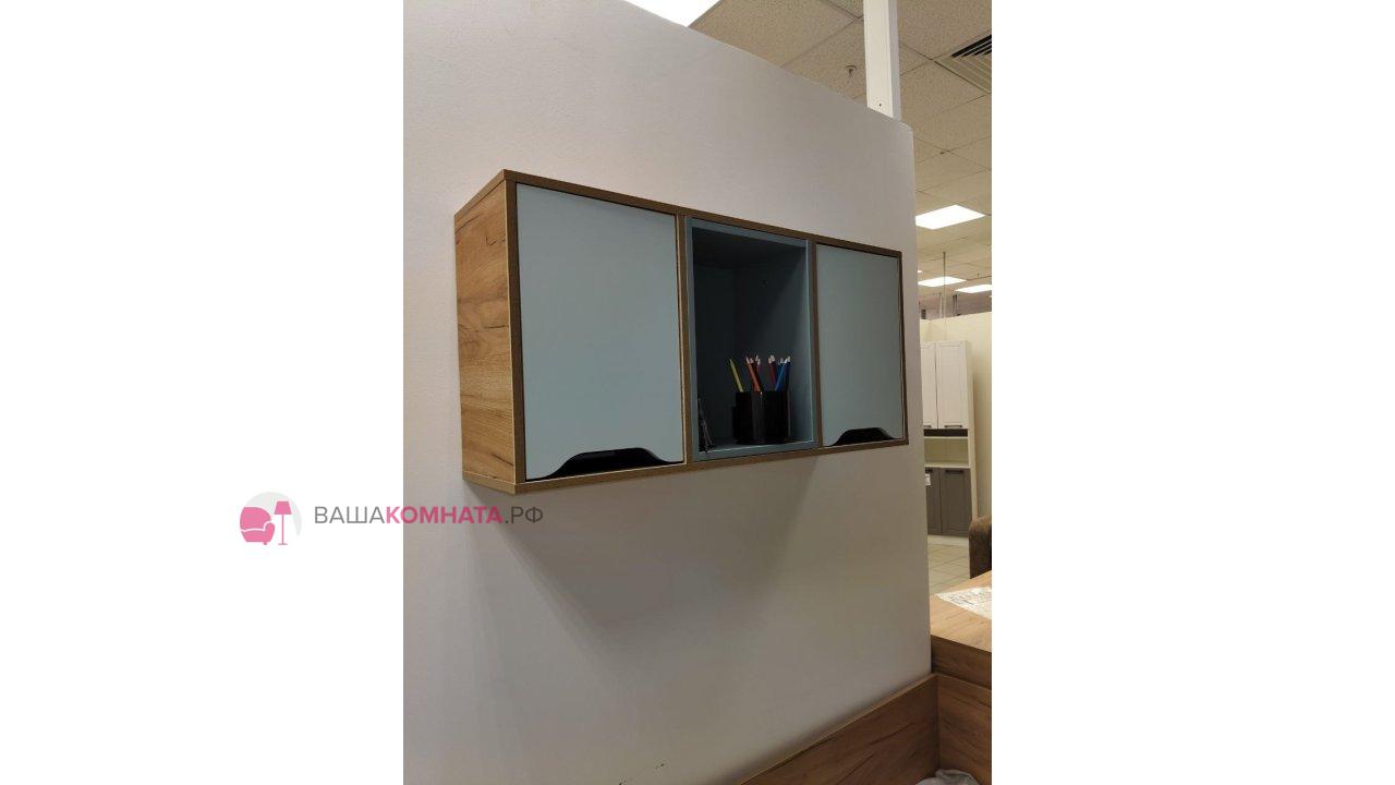 В центральной части полки ниша, в которую установлен короб из ЛДСП 16 мм (Д.344 х В.456 х Г.266) в цветовой гамме фасадов. Короб имеет заднюю стенку ЛДСП 16 мм и крепится к корпусу при помощи стяжки межсекционной D5*32 мм к боковинам.