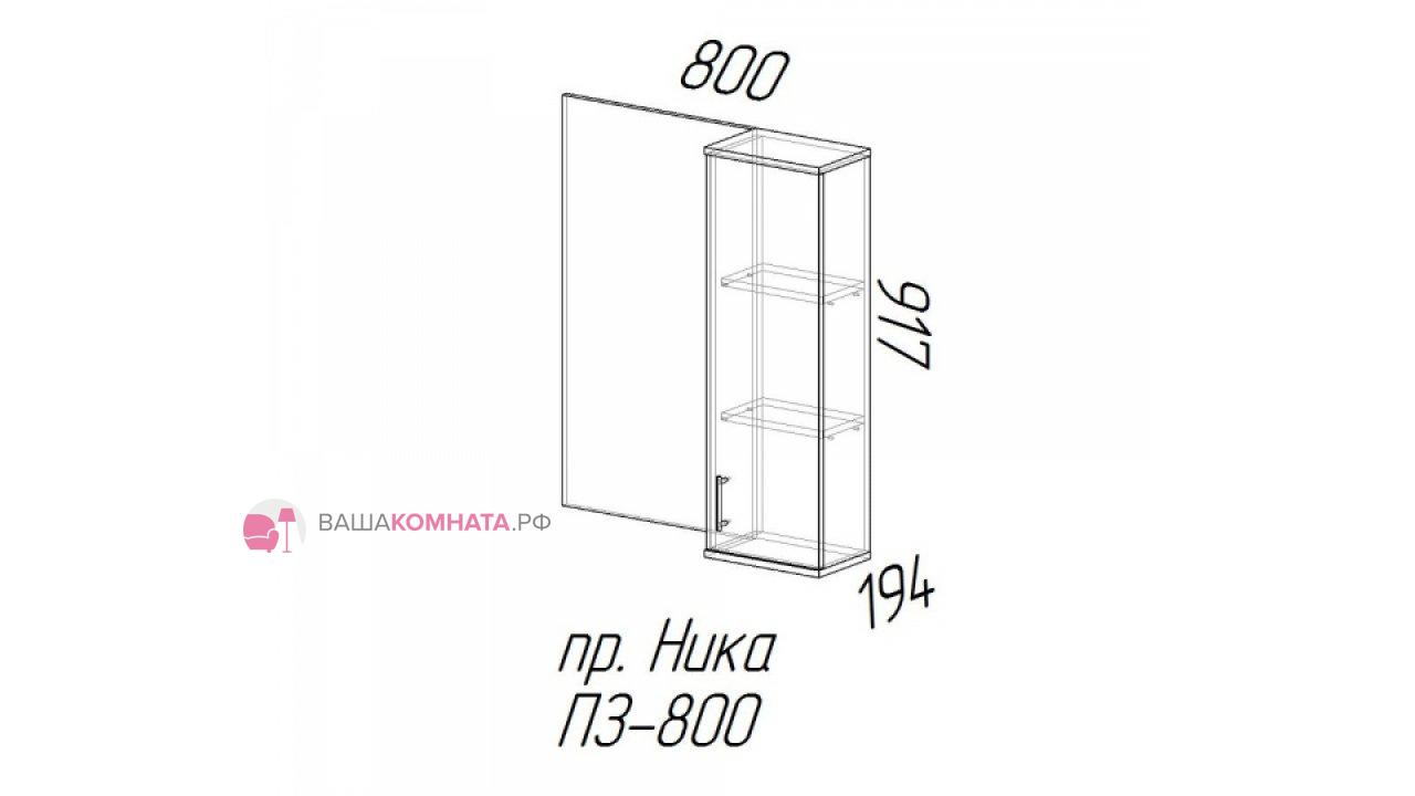 Полка с зеркалом ПЗ800 "Ника" - это мебельный предмет, который сочетает в себе функции зеркала для отражения образа и шкафчика для хранения различных вещей.