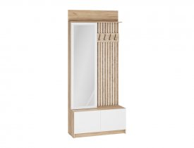 Выполненная в скандинавском стиле прихожая «Бостон» состоит из навесной антресоли, вместительной напольной тумбы, шкафа-пенала с зеркалом, а также из стильной стенки-вешалки, выполненной из профилей. Гарнитур «Бостон» - находка для небольших прихожих.