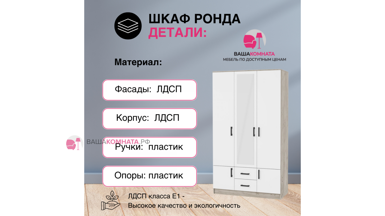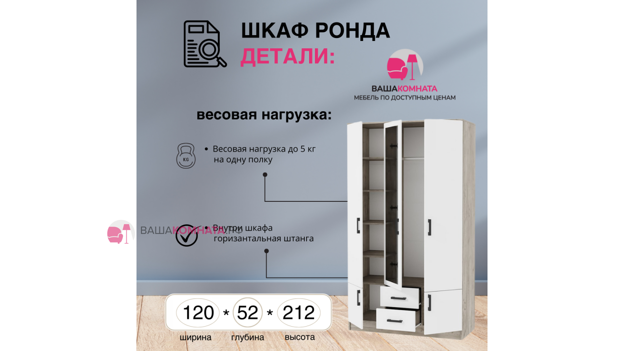 Также Вы можете ознакомиться с товаром данной модели с улучшенной фурнитурой: Шкаф 3-створчатый ШК-3 "РОНДА"
