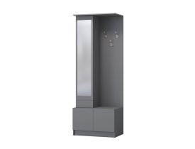 За двумя дверьми находится широкая штанга для вешалок-плечиков с верхней одеждой, деловыми костюмами, красивыми платьями и другой одеждой. Полки, скрытые за боковой дверью, пригодятся для сложенной одежды, постельного и нижнего белья, разнообразных аксессуаров и коробок с обувью.