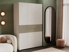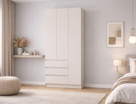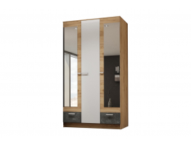 За двумя дверьми находится широкая штанга для вешалок-плечиков с верхней одеждой, деловыми костюмами, красивыми платьями и другой одеждой. Полки, скрытые за боковой дверью, пригодятся для сложенной одежды, постельного и нижнего белья, разнообразных аксессуаров и коробок с обувью.