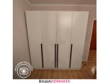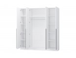 За двумя центральными дверьми находится широкая штанга для вешалок-плечиков с верхней одеждой, деловыми костюмами, красивыми платьями и другой одеждой. Полки, скрытые за боковыми дверьми, пригодятся для сложенной одежды, постельного и нижнего белья, разнообразных аксессуаров и коробок с обувью.