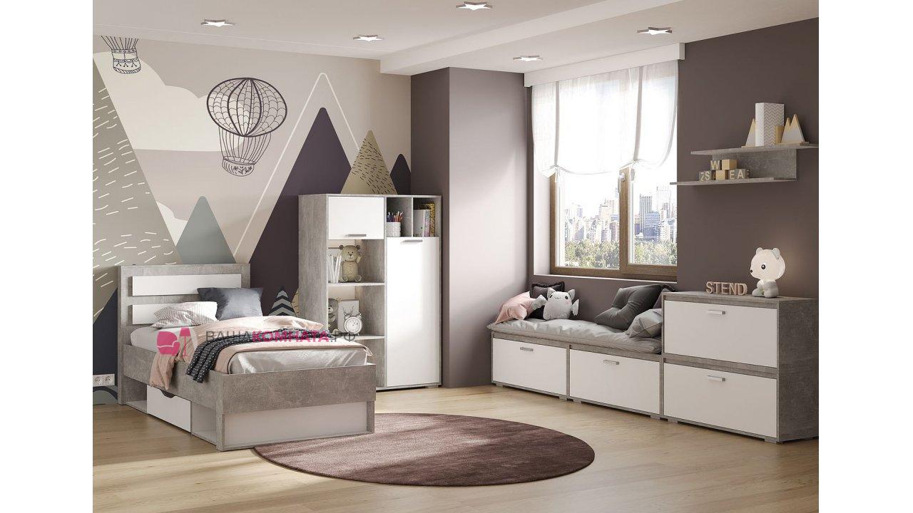 Небольшой компактный шкаф с тремя отделениями для хранения верхней одежды в детской, прихожей или спальне. Компактная, и в то же время стильная модель - идеальное решение для создания современного интерьера. Шкаф оснащен полочками и штангой. Корпус шкафа и двери выполнены в контрастных цветах. Конструкция шкафа отлично подходит для организации хранения вещей, белья и одежды: у него есть и открытые полки, и скрытая створкой ниша, и платяная секция со стационарной штангой для плечиков с одеждой.