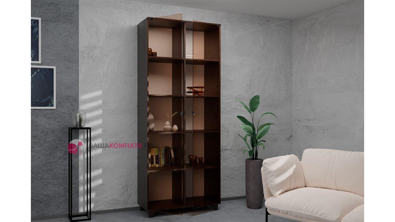 Шкаф двустворчатый "Копенгаген" со стеклом SL - Дуб венге / Стекло затемненное SL