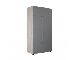 Это двустворчатая модель с распашными дверцами и двумя выдвижными ящиками внизу. Шкаф выполнен в современном стиле и имеет габаритные размеры. Доступная цена делает модель еще привлекательнее.