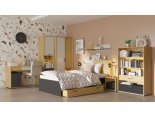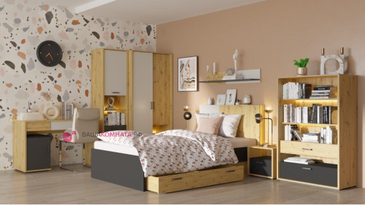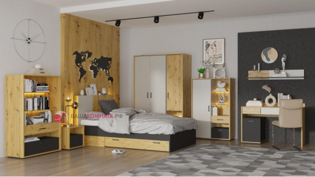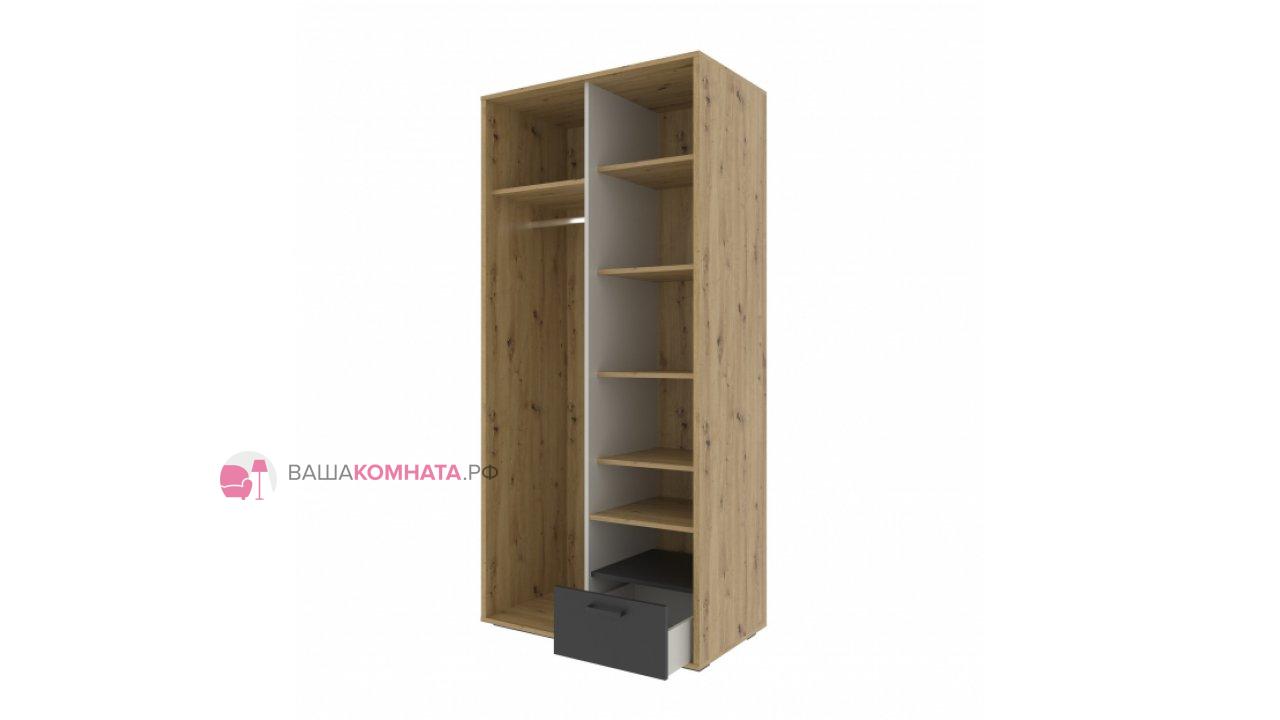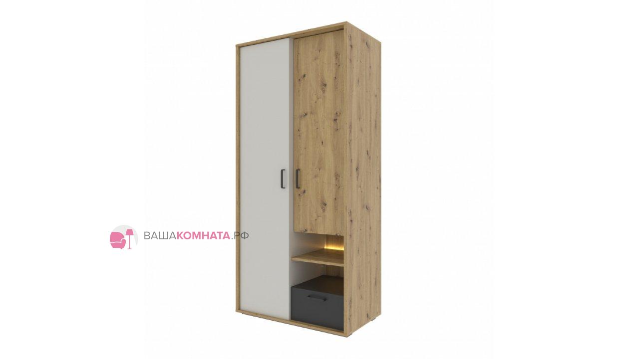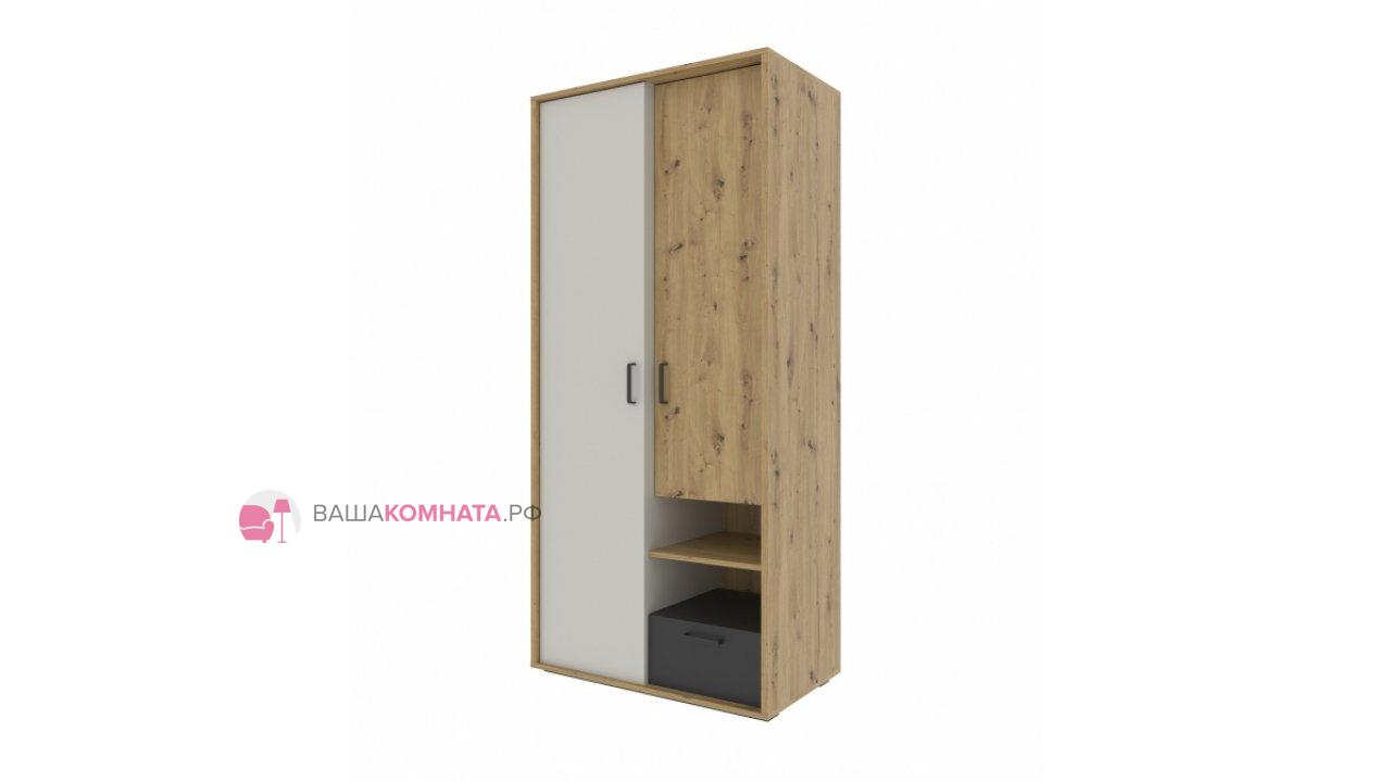 Шкаф двустворчатый "KUBO" 0,9м ШК-90 SL - Серый / Дуб Артизан / Чёрный