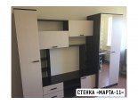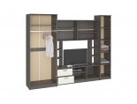 - Гостиная состоит из трёх модулей (шкаф платяной, шкаф бельевой, средняя секция), которые при желании можно устанавливать отдельно друг от друга, размещая в разных комнатах