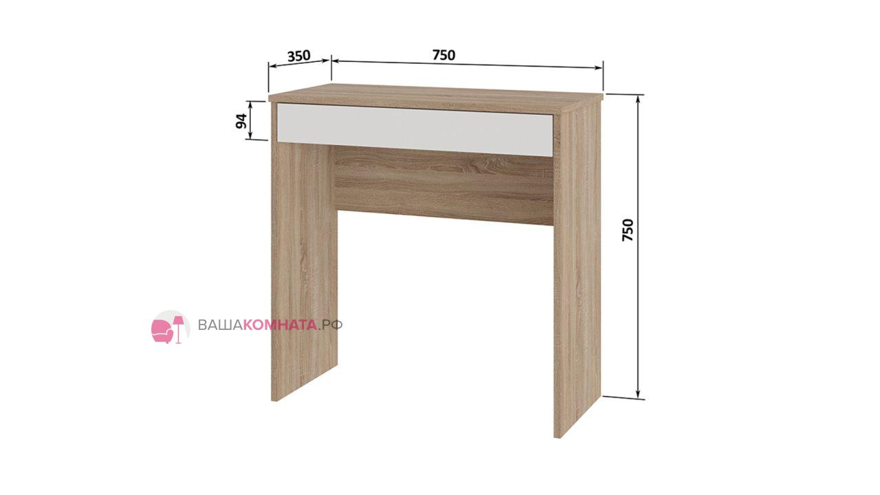 Стол письменный исп.1 NordSi создан для комфортной учебы и работы за компьютером. Он прекрасно впишется в любой интерьер. Компактные размеры позволяют разместить стол даже в небольшой комнате или кабинете, создавая уют и порядок. Стол оборудован выдвижным ящиком для хранения канцелярских принадлежностей и документов.