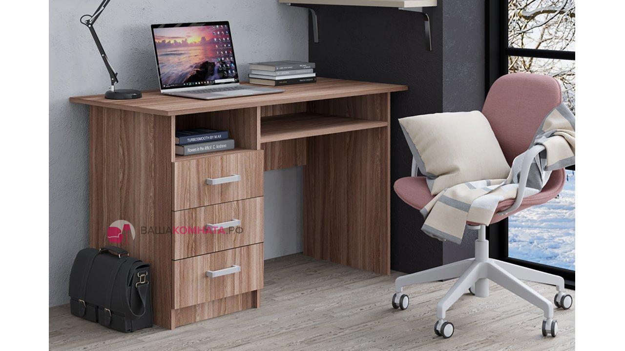 Письменный стол ПС-02 изготовлен из ЛДСП. Состоит из столешницы и трех вместительных ящиков, в которых можно разместить письменные принадлежности. Отлично подходит для комнаты школьника или студента.
