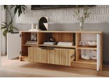 - Сочетает закрытые отсеки, открытую нишу и выдвижной ящик для комплексного хранения;