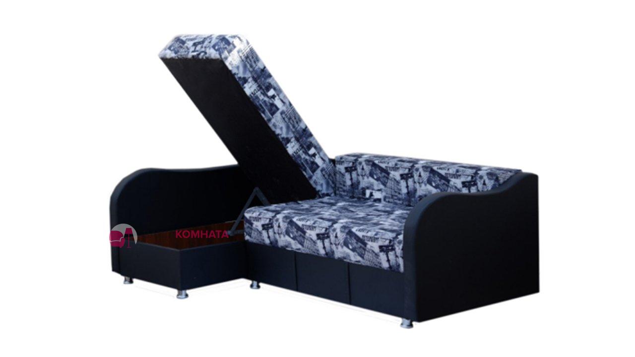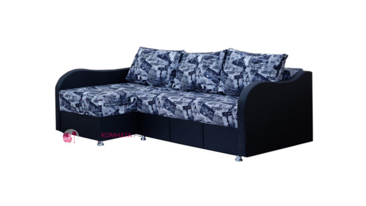 Диван угловой "Байкал" (Кристалл-1) 1,44*2,05 м - Санкт-Петербург (микрвелюр) / Черный (кожзам)